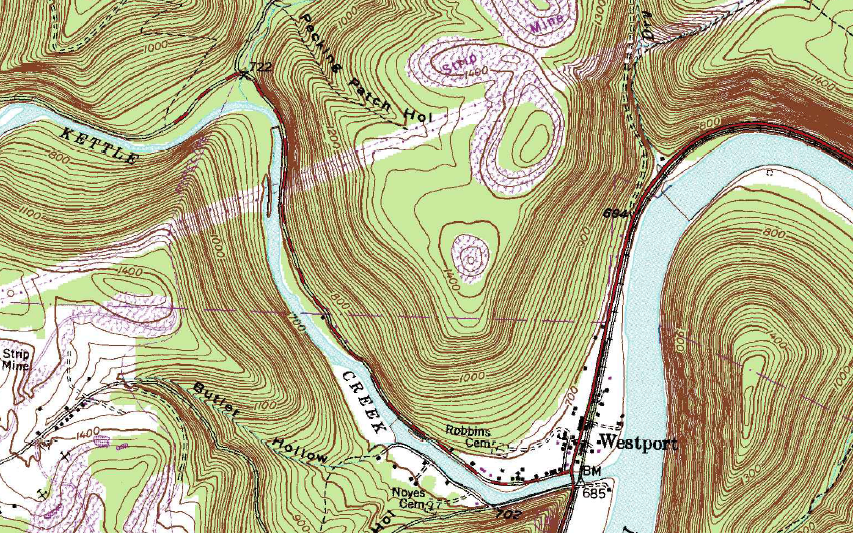 The stream erosion process has a powerful impact on all landscapes. Landscapes that were formed by more steady and widespread forces operating over long periods of time are more predictable in how erosion will wear them down. Landscapes created by more violent and sudden forces, such as eruptions and continental glaciers generally have more random and irregular elements to them. Those aspects of a landscape are detectable in the shapes of the contour lines representing them on topographic maps. On evenly formed and steadily wearing landscapes the contours will tend to stay parallel, even as they bend to show hilltops and stream valleys. Over more rugged and random landscapes, the contours will look very random also.